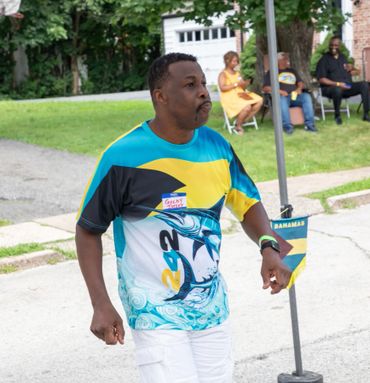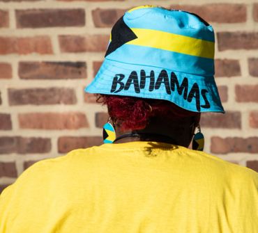 Dressed in her Junkoo Outfit, Dr. Berdine Gordon- Littréan waved the Bahamian Flag, showcasing the beloved Junkoo tradition.